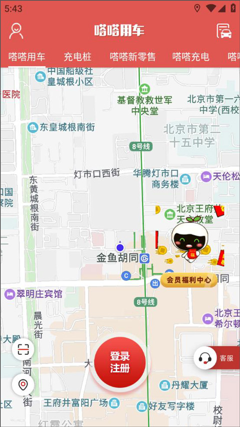 1、涵盖租车、充电桩、新零售、充电及嗒嗒通等功能模块。