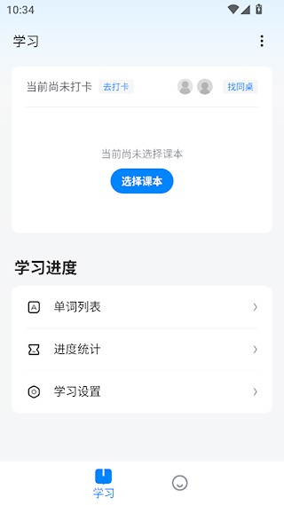 启动欧路背单词后进入首页,即可操作词典及学习功能界面。