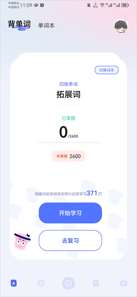 收藏单词自动汇总,便于复习与掌握学习进度。