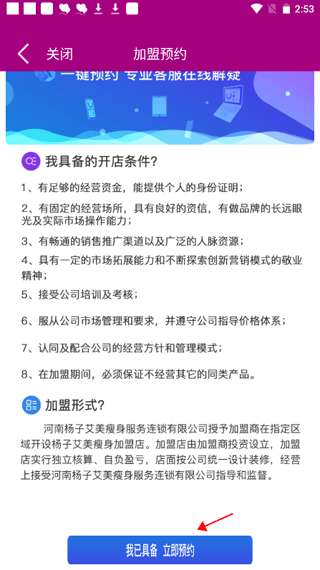先浏览加盟要求和形式,确认符合后再点选蓝色按钮。