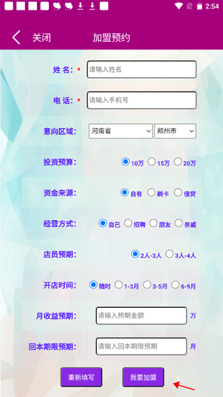 填写个人与店铺信息,点击“我要加盟”完成申请。