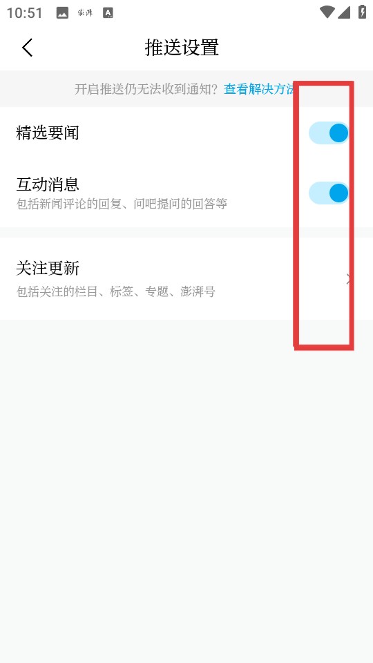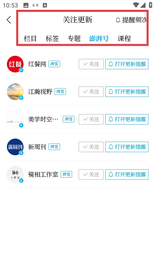 3、进入关注更新,可按栏目或标签逐一调整,关闭更新提醒,即可精准管理接收内容。