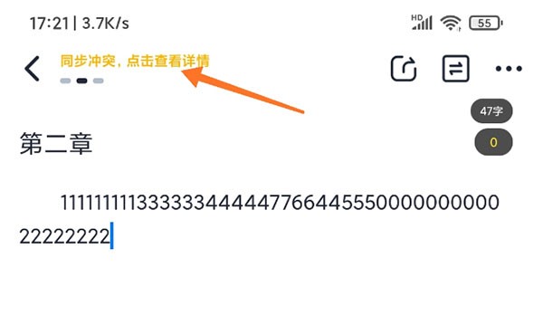此问题可能是云端内容和本地内容产生冲突,或多端内容冲突,比如两个客户端同时在写的时候,就有可能会产生内容冲突。以下示范以手机端为例,电脑端基本同理: