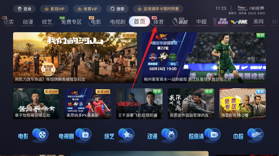 1、在首页导航栏中选择体育栏目