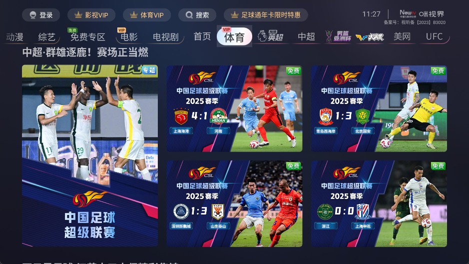热门赛事热血出击:英超、西甲、德甲、意甲、法甲、中网、NBA、CBA、WTT、UFC